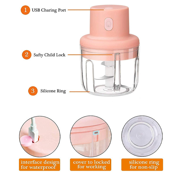 مینی خردکن شارژی یک خردکن 3 تیغه تیز است که تعویض آن برای شما راحت خواهد بود. به عنوان یک وسیله کاربردی برای خرد و میکس کردن سیر ، زنجبیل ، فلفل ، هویج ، سبزیجات ، پیاز و موارد دیگر بسیار مناسب است. این خردکن شارژی قابلیت استفاده در مسافرت یا کمپینگ ها را دارا بوده همچنین ضدآب بوده و آب از محفظه زیرین به بالا و موتور نفوذ نمیکند.این دستگاه از پلاستیک ABS ساخته شده و بسیار مقاوم بوده و همچنین تیغه های آن ضدزنگ می باشد.
