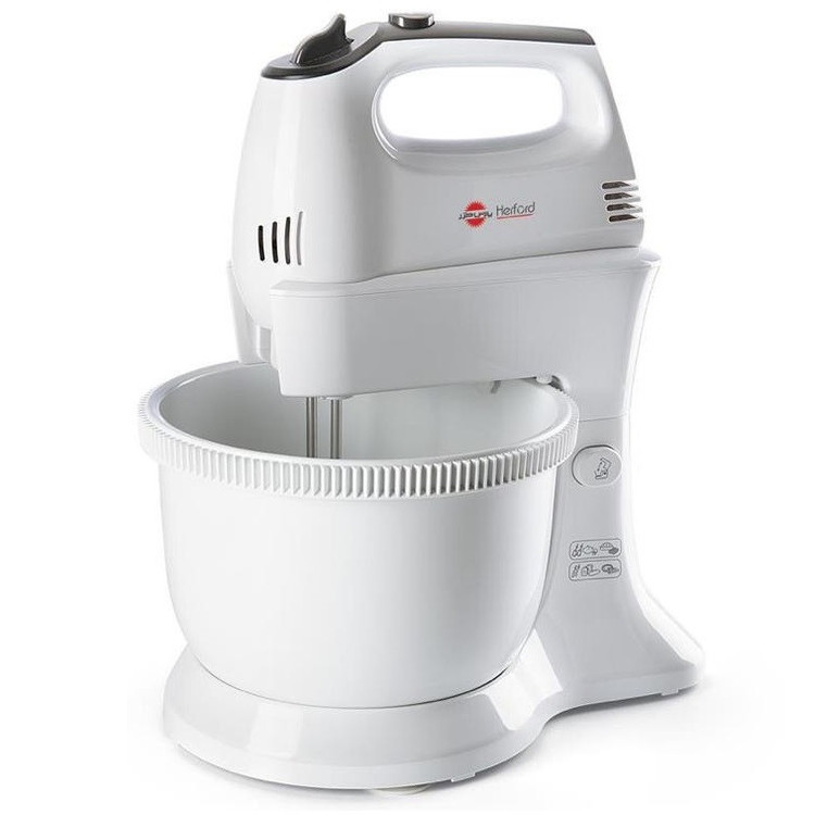همزن برقی کاسه دار پارس خزر مدل Herford با توان 200وات، محصول شرکت پارس خزر که برای هم زدن و مخلوط کردن مواد مختلفی همچون خمیر کیک و شیرینی و … بسیار کاربردی می باشد. دسته همزن با طراحی ارگونومیکی که دارد، استفاده طولانی مدت از دستگاه را فراهم می سازد و می توان از آن به دو صورت دستی و یا پایه دار استفاده نمود.برای این محصول 5 سرعت در نظر گرفته شده که متناسب با نیاز و نوع مواد غذایی، سرعت همزن برقی کاسه دار پارس خزر مدل Herford قابل تنظیم خواهد بود. همچنین این محصول به عملکرد توربو نیز مجهز شده و در صورت نیاز و با فشردن کلید مخصوص آن، همزن با قدرت و توان بیشتری کار می کند.همزن برقی پارس خزر مدل Herford، شامل دو میله همزن و دو میله خمیرزن استیل ضد زنگ می باشد و این سری ها به کمک یک دکمه، از همزن به راحتی جدا می شوند. کاسه همزن از جنس پلاستیک با ظرفیت 3.5 لیتر ساخته شده و برای استفاده آسان از دستگاه، کاسه به صورت گردان طراحی شده است و این ویژگی، موجب ترکیب یکنواخت مواد داخل کاسه می گردد