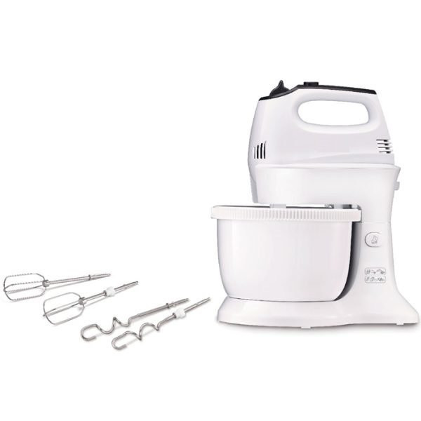 همزن برقی کاسه دار پارس خزر مدل Herford با توان 200وات، محصول شرکت پارس خزر که برای هم زدن و مخلوط کردن مواد مختلفی همچون خمیر کیک و شیرینی و … بسیار کاربردی می باشد. دسته همزن با طراحی ارگونومیکی که دارد، استفاده طولانی مدت از دستگاه را فراهم می سازد و می توان از آن به دو صورت دستی و یا پایه دار استفاده نمود.برای این محصول 5 سرعت در نظر گرفته شده که متناسب با نیاز و نوع مواد غذایی، سرعت همزن برقی کاسه دار پارس خزر مدل Herford قابل تنظیم خواهد بود. همچنین این محصول به عملکرد توربو نیز مجهز شده و در صورت نیاز و با فشردن کلید مخصوص آن، همزن با قدرت و توان بیشتری کار می کند.همزن برقی پارس خزر مدل Herford، شامل دو میله همزن و دو میله خمیرزن استیل ضد زنگ می باشد و این سری ها به کمک یک دکمه، از همزن به راحتی جدا می شوند. کاسه همزن از جنس پلاستیک با ظرفیت 3.5 لیتر ساخته شده و برای استفاده آسان از دستگاه، کاسه به صورت گردان طراحی شده است و این ویژگی، موجب ترکیب یکنواخت مواد داخل کاسه می گردد
