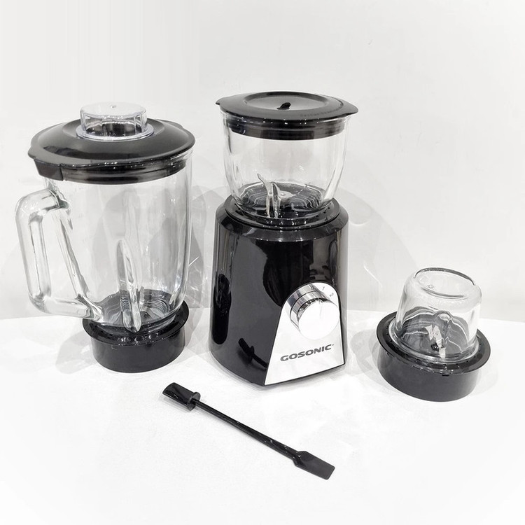 مخلوط کن سه کاره گوسونیک مدل GSB-709 با توان موتوری 500 وات یکی از جدید ترین محصولات تولید شده این شرکت می باشد. جنس بدنه این دستگاه از پلاستیک و پارچ مخلوط کن، از شیشه پیرکس بوده و دوام بالایی دارد. ظرفیت پارچ مخلوط کن آن 1.5 لیتر است. تیغه های مخلوط کن از جنس استیل ضدزنگ و چهارتایی هستند و دارای دو سرعت و عملکرد لحظه ای یا همان پالس(pulse) است. این تیغه ها قابلیت جدا سازی و شستشو دارد. پایه این دستگاه ضد لغزش بوده و نمی لغزد.