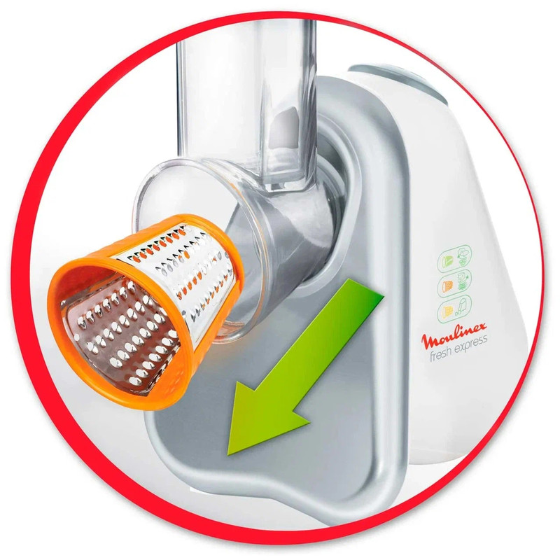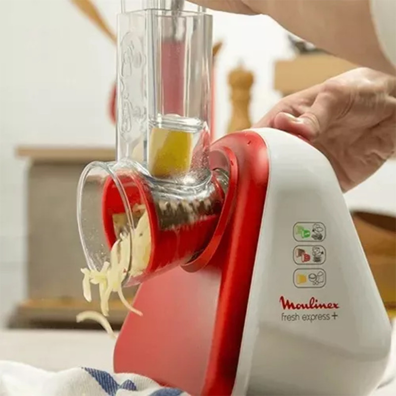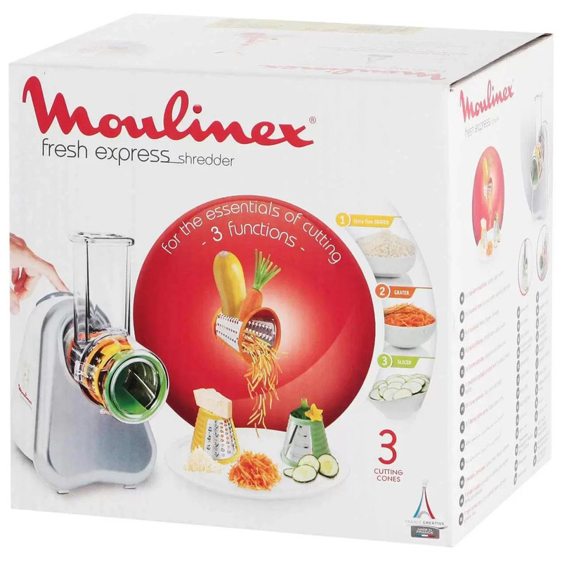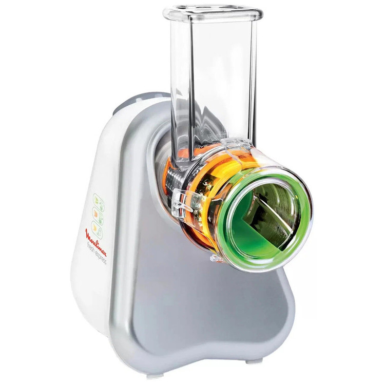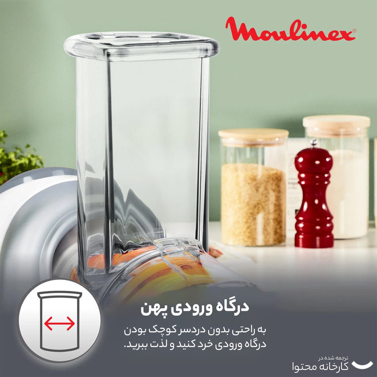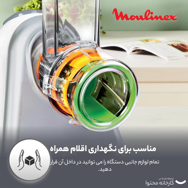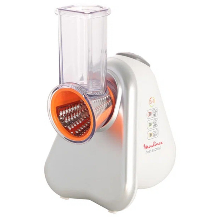 رنده برقی مولینکس مدل DJ755 از دیگر محصولات شرکت مولینکس (Moulinex) است که از طراحی زیبا و کارایی بالایی برخوردار است. کاربری این دستگاه فوقالعاده ساده بوده و کافی است با توجه به مواد غذایی موردنظر تیغه یا رنده مربوطه را در دستگاه قرار دهید. به همراه این دستگاه کوچک رنده و برشزنهای متعددی عرضه شده که مصرفکنندگان را در تهیه سالاد و آمادهسازی وعده غذاهای گیاهی و سالم یاری میکند. فعالیت رنده برقی مولینکس مدل DJ755 بهراحتی از طریق دکمه روی دستگاه آغاز می شود. استفاده از مولینکس مدل DJ755 نهتنها ساده است، بلکه طراحی لوله ورودی و خروجی میوه و سبزیجات ایمنی لازم را نیز تأمین نموده و کاربر بدون نگرانی در کوتاهترین زمان میتواند آنها را خرد، رنده، و یا لایهلایه کند. این دستگاه نهتنها با رندههای ریزودرشت میتواند شما را در تهیه سالاد یاری کند، بلکه مواد غذایی متفاوتی نظیر پنیر را نیز میتوان با آن رنده کرد. علاوه بر این صفحه برشزن یا اسلایسر هم میتواند کاربردهایی نظیر لایهلایه کردن سیبزمینی داشته و لذت تهیه میان وعده هایی دیگر چون چیپس را برای شما به همراه داشته باشد. این دستگاه در ابعاد کوچکی طراحیشده و کابل آن نیز در قسمت پشتی دستگاه بهراحتی جمع میشود. رندهها همیشه جزو ابزارهای پرکاربرد در تهیه انواع غذا و سالادهای گوناگون به شمار میآیند و طی سالهای اخیر همانند دیگر لوازم آشپزخانه، نمونه برقی این ابزار کاربردی آشپزی نیز به جمع لوازم برقی آشپزخانه پیوسته است. لازم به ذکر است سازنده این دستگاه شرکت مولینکس (Moulinex) یک شرکت بزرگ فرانسوی است که از سال 1937 میلادی آغاز به کار کرده است. این شرکت در زمینههای مختلفی ازجمله ساخت لوازم برقی خانگی، فعالیتهای گستردهای انجام میدهد.