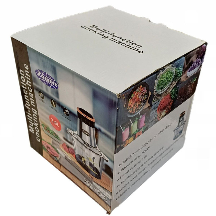 خردکن برقی زومیت مدل ZM-1835 از دیگر محصولات با کیفیت و کارآمد برند آلمانی زومیت می باشد. در واقع این دستگاه یکی از محصولاتی است که وظیفه ی اصلی و برجسته ی آن میکس و خرد کردن مواد غذایی مختلف می باشد. زومیت این محصول خود را با توان 500 وات که میزان زیادی می باشد تولید کرده است. همچنین به صورت سه سرعته می باشد و این به این معناست که می توان بسته به نوع مواد غذایی سرعت آن را در دو حالت متفاوت از طریق کلید طراحی شده در بالای دستگاه تنظیم کرد و برای کار با آن می توان سرعت مورد نظر خود را انتخاب کرد. به علاوه باید بیان کنیم که ظرفیت ظرف آن معادل 3.0 لیتر است و جنس آن نیز شیشه ای و محکم و مقاوم در برابر ضربات است.همچنین شایان ذکر است که بیان کنیم که به بدنه ای از جنس استیل که استحکام بالایی دارد مجهز شده است. بجز این موارد نام برده شده تیغه هایی 6 پره دارد که آن ها نیز از استیل ضد زنگ ساخته شده اند و با سرعت و دقت بالایی به برش و خرد کردن مواد غذایی متفاوت و مختلف همچون رنده و خردکردن انواع میوه و حبوبات خواهند پرداخت. به علاوه امکانات و قابلیت های این خردکن برقی 500 وات زومیت ZM_1835 تنها به همین چند مورد نام برده شده ختم نمی شود بلکه از یک کلید روشن خاموش در جهت روشن و خاموش کردن محصول برای کار با آن و یک سوییچ ایمنی بهره می برد و از موتور مسی پر قدرت و پر توان نیز بهره می برد.
