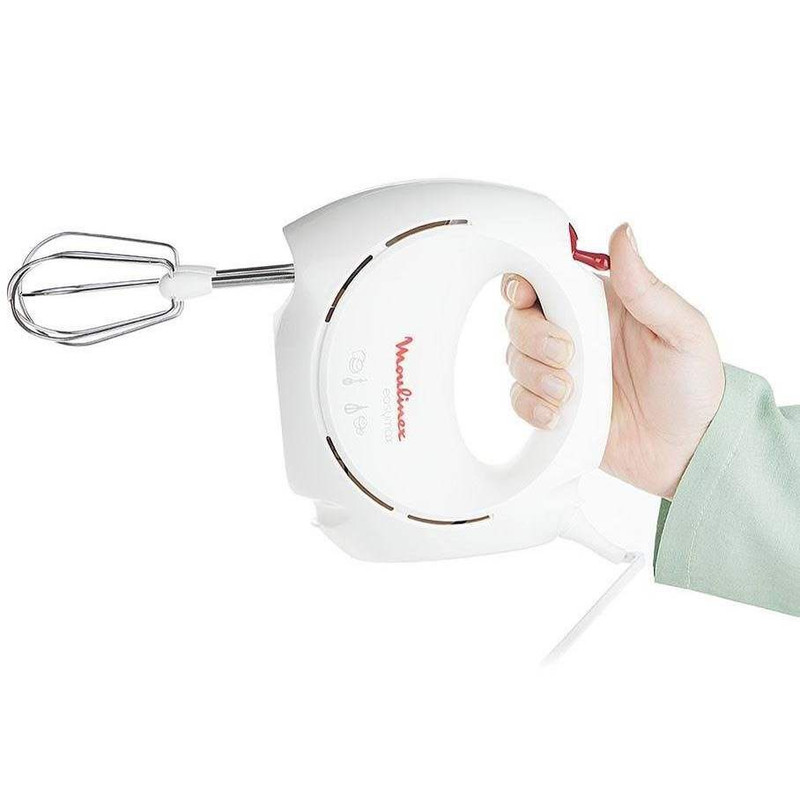 همزن دستی «مولینکس»، سری «ایزی مکس»، مدل «ABM11A30» دستگاهی ساده و کوچک است که میتواند از زحمات آشپزی و پختوپز تا حد زیادی بکاهد. این همزن با قدرتی که دارد، میتواند مواد مختلف را با هم مخلوط کند و حسابی هم بزند. این مخلوطکن دارای دو پرهی فلزی است که با کنار هم قرارگرفتن، میتوانند شکل و حرکت کارآمدی را برای همزدن ایجاد کنند. با تنظیم سرعت در بالای دستگاه، میتوان سرعت همزدن را تعیین کرد تا مخلوطی مناسب برای پخت ایجاد شود. با دکمهی آزادکننده، پرهها از دستگاه آزاد میشوند؛ بهاینترتیب امکان شستوشوی آنها حاصل میشود و میتوان بهراحتی و بدون نگرانی از نفوذ آب به دستگاه، تیغهها را شست. این دستگاه دارای دو نوع پره است که میتوان خمیرها و مخلوطهای مختلف را با آنها هم زد. در این مدل برای همزدن در کاسهی مخصوص، محدودیت وجود ندارد و آشپز میتواند در هر ظرفی عمل همزدن را انجام دهد. در قسمت عقب این دستگاه، شیارهایی وجود دارد که در پایان کار میتوان سیم دستگاه را دور آنها پیچید تا جابهجایی دستگاه و نگهداری آن راحتتر باشد. تولید این محصول از سوی شرکت معتبر «مولینکس» طرفداران و مشتریان این برند را راضی و خوشحال نگهداشته است. این شرکت سالهاست در امر تولید لوازمخانگی برقی کوچک و بزرگ فعالیت دارد.