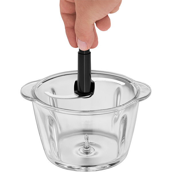 کاسه خرد کن دارای حجم 1 لیتری میباشد و از جنس شیشه بادوام ساخته شده که هیچ گونه ضرری برای مواد غذایی ندارد.