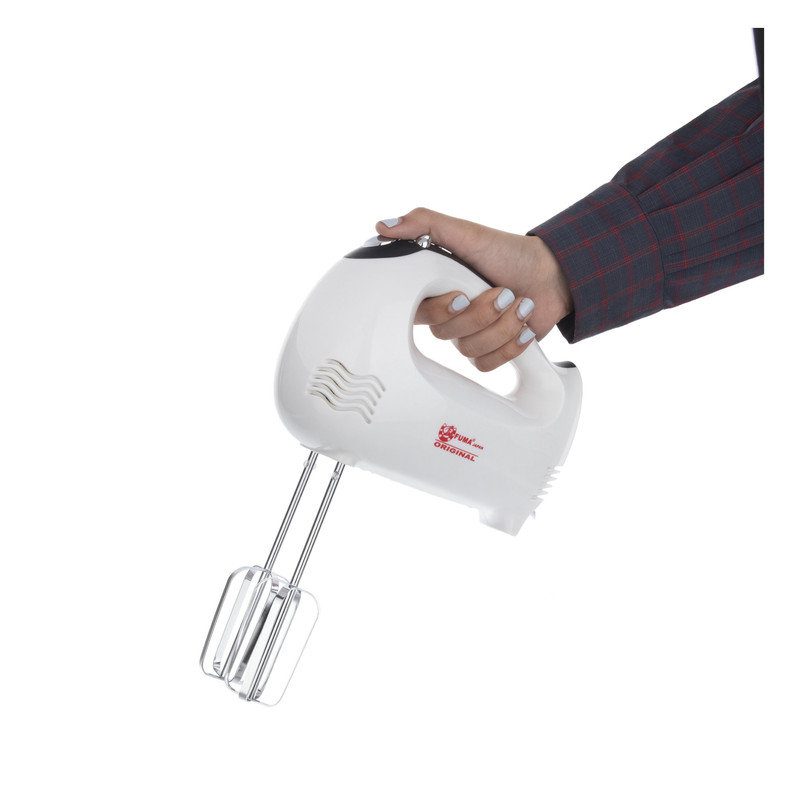 همزن فوما مدل FU-1923 محصولی بسیار با کیفیت از کشور ژاپن می باشد. این مدل، یکی از مدل های کارآمد و پر کاربرد شرکت فوما بوده که با قیمت مناسب و طراحی ارگونومیک تولید و ارائه شده است. این همزن قدرتی معادل 550 وات دارد و 5 حالت سرعت را جهت راحتی کار، در اختیار کاربر قرار می دهد تا بتواند به راحتی سرعت لازم را برای مواد سفت و یا معمولی برگزیند. به همراه سرعت های متعدد، این همزن همچنین از حالت Turbo نیز جهت تسریع بخشیدن به حرکت تیغه ها استفاده می کند. این حالت به ویژه در مواقعی که موادی مانند یخ داخل کاسه باشد و یا بخواهید در مدت زمان کمتری مخلوط آماده شود، بسیار مفید است. این همزن در دو رنگ دکمه مشکی و دکمه نقره ای عرضه می گردد. این همزن دارای تیغه های اصلی و با کیفیت از جنس استیل ضد زنگ می باشد. علاوه بر آن 2 سری دیگر نیز برای تهیه و هم زدن خمیر نیز به همراه دارد. این اجزا به راحتی قابل اتصال به دستگاه اصلی هستند. طراحی این همزن ارگونومیک بوده و به راحتی در دست قرار می گیرد. برای راحتی کار، دکمه های سرعت بر روی دسته همزن طراحی شده است. در صورتی که به دنبال یک همزن قوی، با کیفیت و زیبا هستید، می تواند گزینه ای بی نظیر باشد.