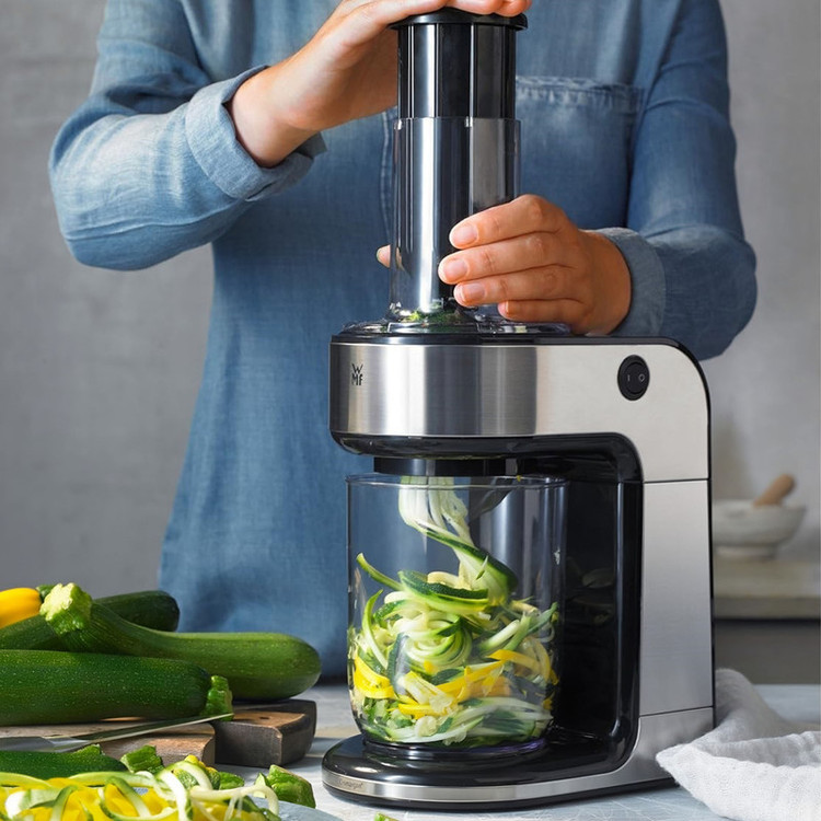 سایر توضیحاتتوان مصرفی 80 وات، دارای سه عدد رنده رشته کن با سایزهای 3 و 5 و 9 میلیمتر، ساخته شده از استیل منحصربفرد دبلیو ام اف Cromargan مقاوم در برابر خط و خش، طراحی بسیار مدرن و در عین حال کاربردی