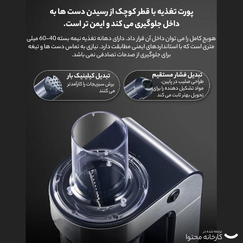 سایر توضیحاتتوان مصرفی 80 وات، دارای سه عدد رنده رشته کن با سایزهای 3 و 5 و 9 میلیمتر، ساخته شده از استیل منحصربفرد دبلیو ام اف Cromargan مقاوم در برابر خط و خش، طراحی بسیار مدرن و در عین حال کاربردی