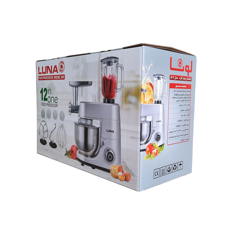 ماشین آشپزخانه «لونا» مدل «509» با توان 1500 وات یک محصول کارآمد با قابلیت های متنوع است. این دستگاه دارای 6 سرعت متفاوت به همراه عملکرد لحظهای میباشد که به کاربر اجازه میدهد با توجه به مواد مصرفی خود سرعت بهینه و مناسب تر را انتخاب کند. ماشین آشپزخانه لونا با عملکردهای همزن، مخلوط کن، چرخ گوشت، تخم مرغ زن، خمیر زن و لوازم جانبی دیگر یک همراه مناسب در آشپز خانه میباشد. شرکت لونا در طی سال ها با ارائه محصولات باکیفیت و با قیمت مقرون بهصرفه، محصولات لونا را به یکی از گزینه های مهم پیش روی خریداران لوازم برقی تبدیل کرده است .
