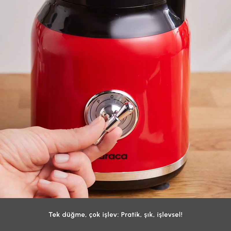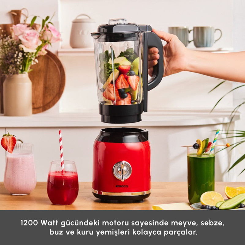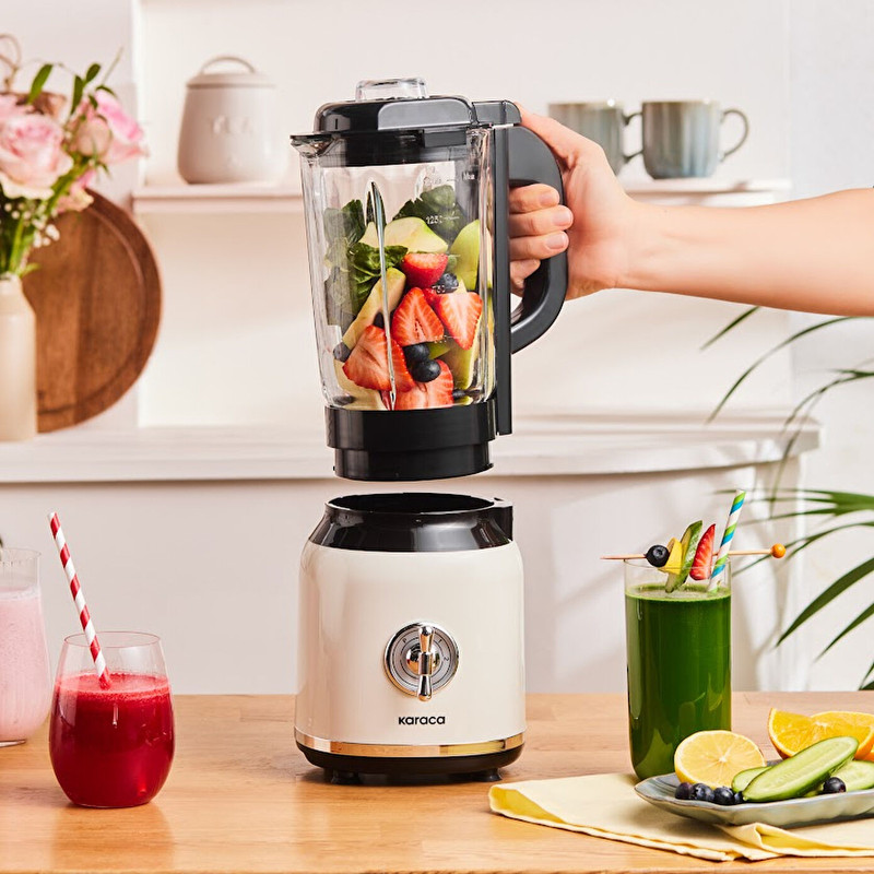 آسانترین و شیکترین روش برای تهیه مخلوطهای خوشمزه و نرم، مخلوطکن اسموتی KARACA VINTAGE CRAFT هست.در حالی که با طراحی رترو خود، حس نوستالژیکی به آشپزخانه شما میبخشد، به لطف موتور قدرتمند 600 واتی و 4 تیغه استیل ضد زنگ بادوام، حتی سختترین مواد را در عرض چند ثانیه به نرمی خامهای تبدیل میکند.محفظه شیشهای بزرگ 1.5 لیتری آن، امکان تهیه وعدههای غذایی بزرگ برای خانوادههای پرجمعیت یا مهمانان را فراهم میکند، بنابراین میتوانید نوشیدنیهای عالی را برای همه در یک مرحله تهیه کنید.اکنون با تنظیم سرعت دو مرحلهای و ویژگی پالس، تهیه دستور العملهای خود با غلظت دقیق مورد نظر بسیار آسان است!این دستگاه تمام نیازهای شما را از خرد کردن میوهها و سبزیجات گرفته تا خرد کردن یخ سفت برآورده میکند.ساختار تمیز شونده آسان آن در زمان شما صرفهجویی میکند، در حالی که با پایههای ضد لغزش خود، استفاده ایمن و راحت را ارائه میدهد.با جنس بدون BPA، سلامت شما را در اولویت قرار میدهد، بنابراین میتوانید نوشیدنیهای خود را با آرامش خاطر مصرف کنید.مخلوطکن اسموتی KARACA VINTAGE CRAFT، ترکیب بینظیر سبک رترو و فناوری مدرن! انتخابی ایدهآل برای کسانی که به دنبال ظرافت، کارایی و عملکرد در کنار هم در آشپزخانه هستند.