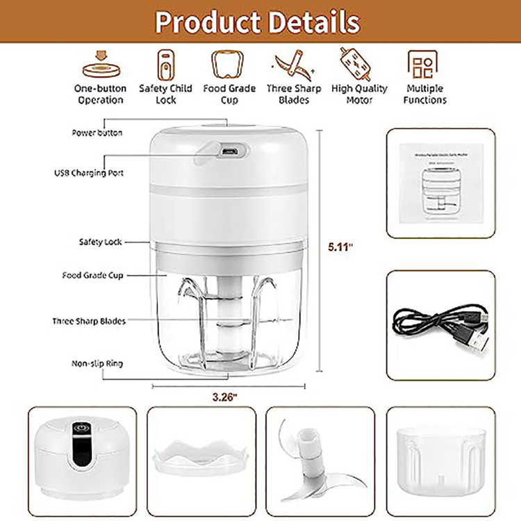 سایر توضیحات: خردکن شارژی و مسافرتی توسط کابل USB