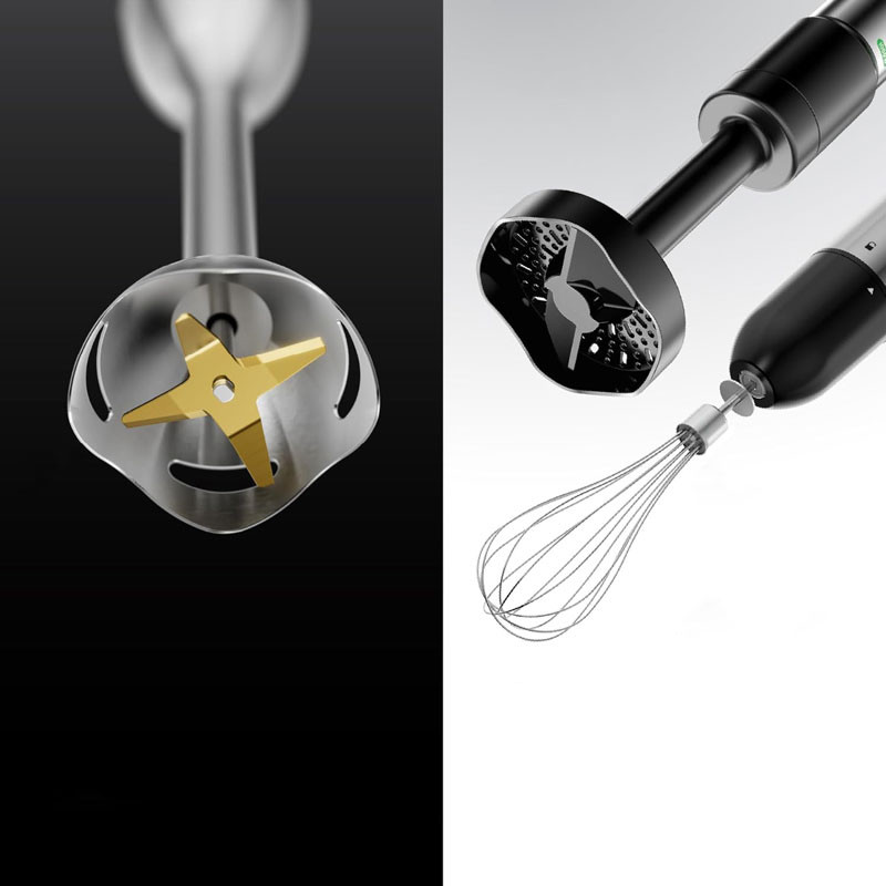 یکی از برجستهترین ویژگیها، استفاده از تیغههای ۴ پره تیتانیومی در بخش گوشت کوب و خردکن است. تیغههای تیتانیومی نسبت به تیغههای استیل معمولی، مقاومت بیشتری در برابر سایش و گرما دارند و از اکسیداسیون مواد غذایی جلوگیری میکنند. این تیغهها ، خرد کردن و مخلوط کردن مواد را با دقت و سرعت بالا انجام میدهند، بدون اینکه مواد له شوند یا بافتشان آسیب ببیند.