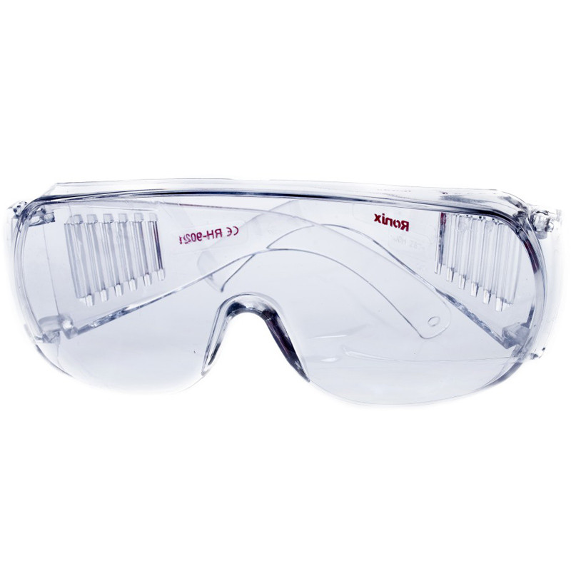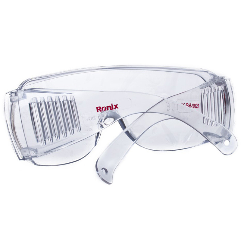 عینک سنگ زنی رونیکس مدل rh-9022 با عدسی پلاستیکی دارای شفافیت مناسب و تراکم بالا، دارای خاصیت ضد خش و ضد غبار است و قابلیت استفاده بر روی عینکهای طبی را داراست.