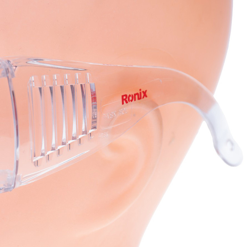 این عینک محافظ سنگ زنی رونیکس، با میدان دید گسترده و نمایان و کاربرد مناسب، همراه با کیفیت عالی، در کارهای مختلف شما از جمله در امور نجاری، تراشکاری، تاسیسات، امور ساختمانی و سایر فعالیتها، محافظ چشمان شما در برابر برادهها و اجسام تیز و پرتاب شونده است. زیرا کشیدگی سمتهای کناری عدسی این عینک به سمت دسته، برای جلوگیری از برخورد اجسام ریز از گوشهها به چشم شما طراحی شده است.این عینک ایمنی سنگ زنی، دارای سیستم محافظ و هواخور جانبی ویژه است.