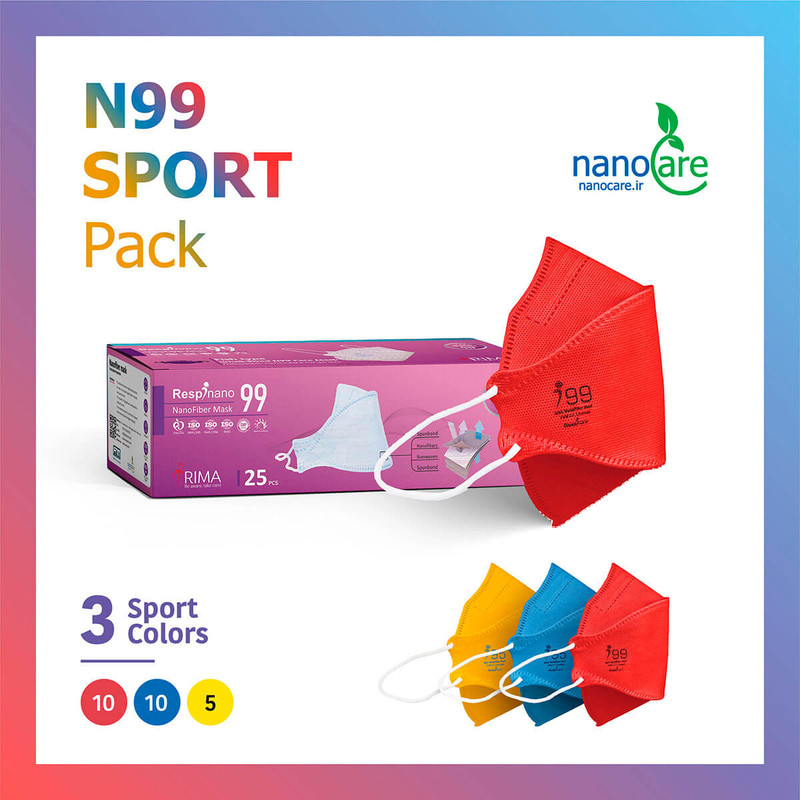 ماسک تنفسی ریما مدل سه بعدی N99 نانو کد Sport-F99 بسته 25 عددی