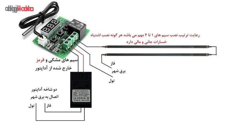جهت کنترل دما قسمت استیل سنسور سیم دار را در جایی که قرار است دمای آن کنترل شود قرار دهید و با استفاده از کلیدهای موجود بر روی ترموستات دمای دلخواه را تنظیم کنید