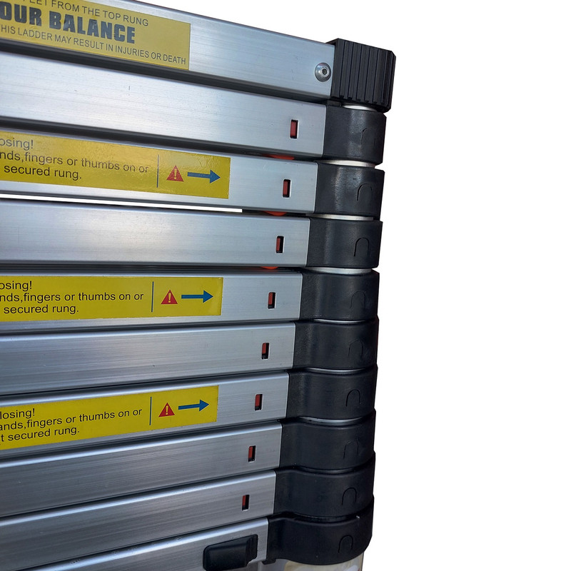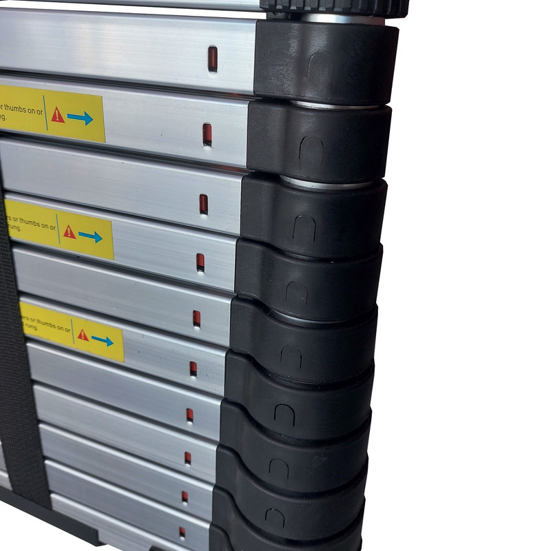 اگر قصد دارید نردبانی با ویژگیهای جالب داشته باشید، محصول فوق گزینهی مناسبی خواهد بود. این نردبان 13 پله دارد و از نوع تلسکوپی یک طرفه می باشد وارتفاع آخرین پلهی آن از سطح زمین به 3.8 متر میرسد. وزن پایین محصول در مقایسه با نردبان های آهنی و چوبی جابه جایی رو بسیار آسان کرده این وزن مناسب بهدلیل استفاده از آلومینیوم در ساختار آن است. این فلز استحکام بالایی دارد و فرد میتواند با اطمینان کامل از این محصول استفاده کند. وزن قابلتحمل این محصول 150 کیلوگرم اعلام شده است. قفل های این نردبان اتوماتیک بوده و برای بستن آن کافیست فقط ضامن های پایینی را آزاد کنید تا نردبان به صورت اتوماتیک جمع شود. این نردبان قابلیت تنظیم ارتفاع به صورت پله به پله را داراست. قطر پایه های این نردبان 10 سانتیمتر میباشد که نسبت به سایر نردبان ها استحکام به مراتب بالاتری دارد. بسته بندی این محصول با پلاستیک جباب دار ضد ضربه می باشد.