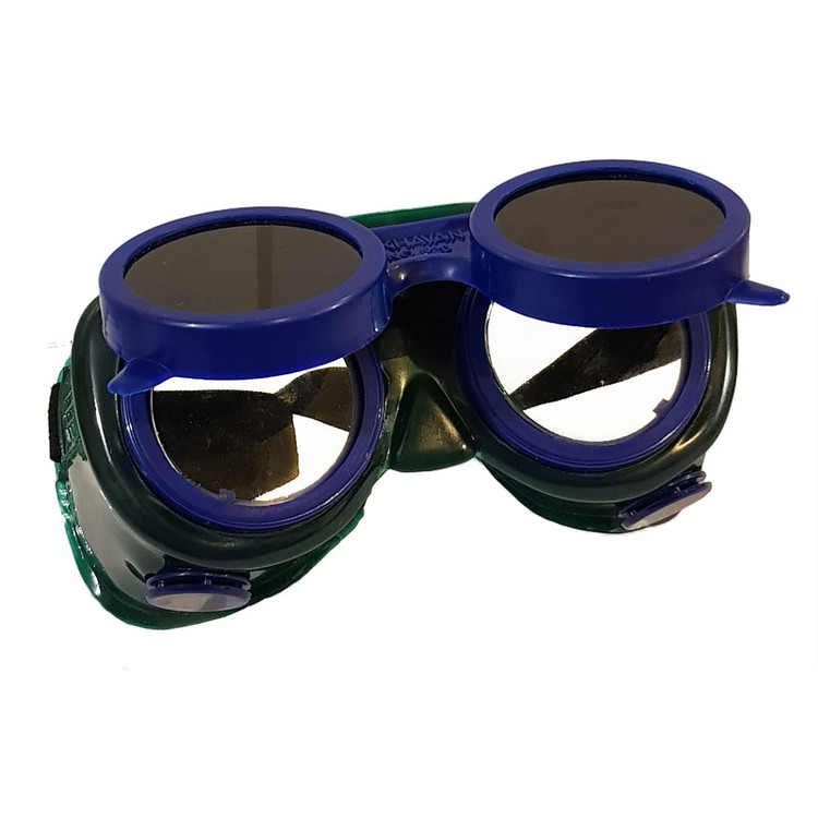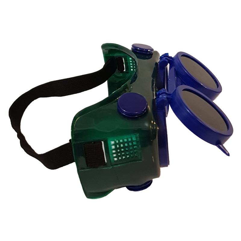 سایر توضیحات: این عینک بصورت دو جداره است و قاب روی عینک بصورت متحرک بالا و پایین میرود تا بدون برداشتن عینک بتوان محیط کار را رویت کرد این عین با کش دور سر فیکس میشود