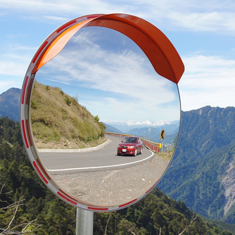 آینه ی محدب پلی کربنات در قطرهای 60 و 80 سانتی متری تولید می شود و قابل نصب در جاده های برون شهری، پیچ گذرگاه ها، پارکینگ ها، خیابان های درون شهری، تونل ها و ... است، که به کاهش تصادفات و حوادث کمک خواهد کرد. آینه های پلی کربنات نسبت به آینه های استیل دار ضعیف تر بوده ولی از لحاظ قیمت نسبت به جنس استیل با صرفه تر است لذا جنس آینه آن مثل فلز نیست و مانند جنس پلاستیک فشرده (پلی کربنات) است که با زدن انگشت حس طلق بودن آینه را میدهد ولی ماندگاری بیشتری نسبت به جنس شیشه ای آن دارد. آینه ی محدب ترافیکی پلی کربنات بدنه ی مقاومی در برابر رطوبت، گرد و غبار و تابش مستقیم نور خورشید داشته و با صرف زمان و هزینه ی اندکی نصب می شود، همچنین پایه ی این محصول از فلز محکم و ضد زنگ ساخته شده است.