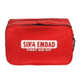 محتویات جعبه کمکهای اولیه: باند دور بافت , باند زخم , باند کشی , بتادین , پانسمان آماده , پتوی نجات , پد الکلی , پد چشمی , پنبه , تب سنج , چراغ قوه , چسب باند , چسب زخم , چسب ضد حساسیت , دستکش , دستکش لاتکس , سرجی فیکس سر , سنجاق قفلی , قیچی , گاز استریل , گاز وازلینه , ماسک