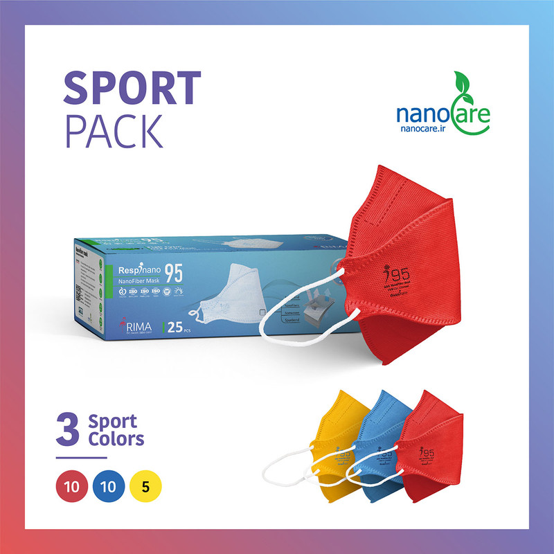 ماسک تنفسی ریما مدل سه بعدی N95 نانو کد Sport-F95 بسته 25 عددی