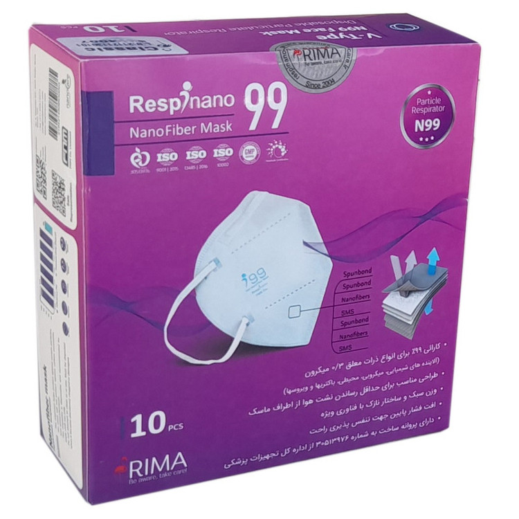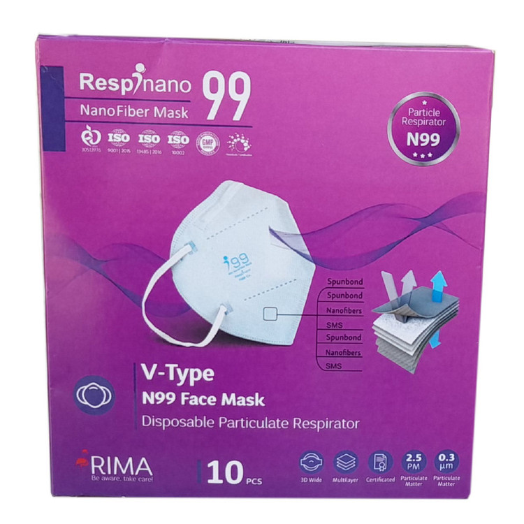 ماسک تنفسی ریما مدل وی تایپ N99 نانو کد REDi-V99 بسته 10عددی