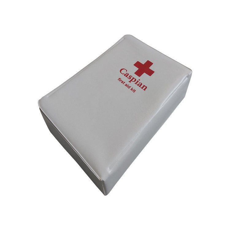 محتویات جعبه کمکهای اولیه: باند زخم , پد الکلی , پد چشمی , پنبه , چسب زخم , دستکش , گاز استریل , ماسک