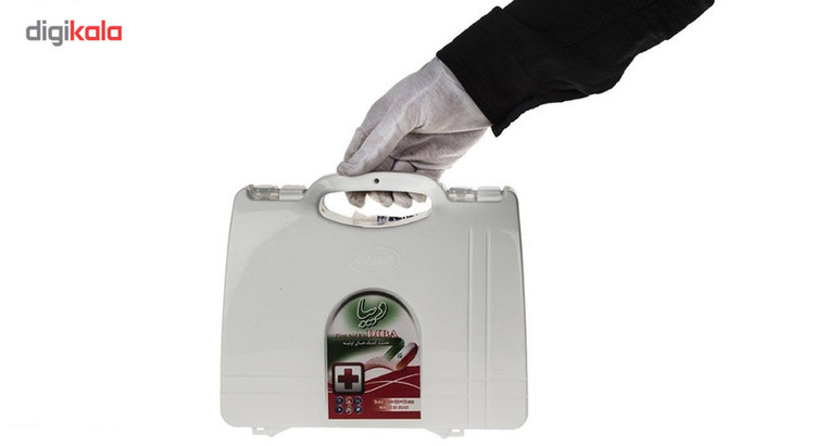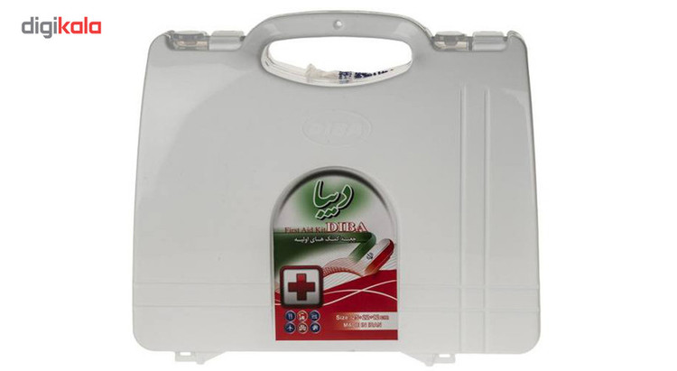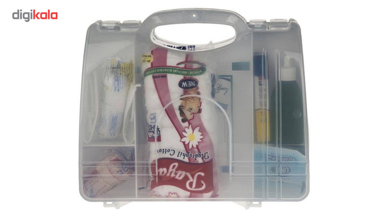 محتویات جعبه کمکهای اولیه: ماسک , چسب زخم , گاز استریل , باند کشی , باند زخم , پد الکلی , پنبه
