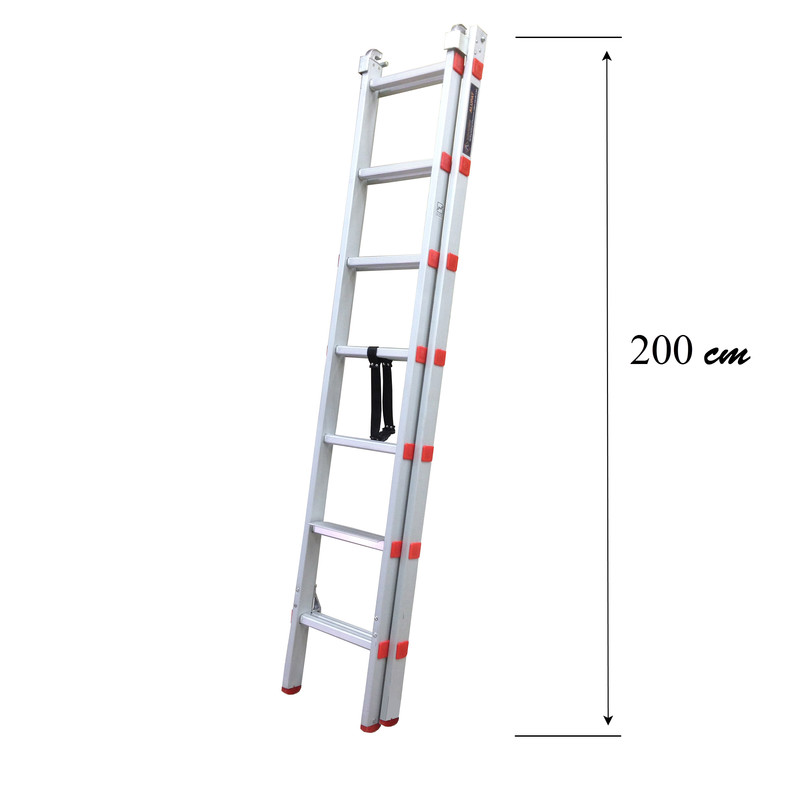 نردبان 4 متری دولنگه دوطرفه کشویی (مخابراتی). وزن قابل تحمل نردبان 150 کیلوگرم و مجاز 130 کیلوگرم ، قابل تبدیل به سه حالت مختلف، شامل دو لنگه دو متری مجزا ، ارتفاع در حالت باز شده کامل هر دو لنگه به صورت کشویی 3.35 متر ، در حالت دو طرفه 1.82 متر ، در حالت بسته 2 متر می باشد. در ساخت این نردبان از پروفیل های مستحکم اکسترود شده و بدون خط اتصال از جنس آلیاژ مخصوص آلومینیوم استفاده شده است و نفوذ عمیق پله ها در پروفیل های جانبی و پرس محکم انتهای پله ها موجب اتصال امن آنها گردیده است و به علت نوع آلیاژ استفاده شده، موجب استحکام بالا و وزن کم نردبان گردیده است. ، لاستیک های مخصوص ضد لغزش در پایه های نردبان و کمربند ایمنی و سطح مقطع مربع شکل موجب استحکام بیشتر پـله ها و ایمنی بالا شده و همچنین راحتی هر چه بیشتر را برای کاربران محترم تامین کرده است. ، به دلیل کیفیت بالای آلیاژ به کار رفته در پروفیل ها، از رنگ کردن محصولات اجتناب می کنیم و احتمال وجود خط و خش جزئی بر روی محصولات می باشد که در محصولات آلومینیومی کاملاً طبیعی و ناگزیر است. ، شاید در نگاه اول نردبان به صورت یک ابزار ساده به نظر برسد ولی یکی از پر اهمیت ترین نکاتش تامین امنیت و راحتی کاربر می باشد که به حول قوه الهی نزدیک به نیم قرن تامین کننده صد در صد امنیت و ایمنی کاربرانمان بوده ایم و هستیم. ، صنایع آلوپات نخستین تولید کننده ایرانی است که نردبان و داربست آلومینیومی با کیفیت برتر در انواع صنعتی و خانگی و فوق مستحکم نیروگاهی و مخابراتی و آتش نشانی با استانداردهای پذیرفته شده بین المللی را طراحی و تولید کرده است و دارای استاندارد ایران و ISO 9001:2015 در سیستم مدیریت کیفیت، صادره از رویال سرت ( Royal Cert ) آلمان می باشد و محصولات این شرکت با رعایت آخرین استانداردهای بین المللی در این زمینه تولید می گردد.