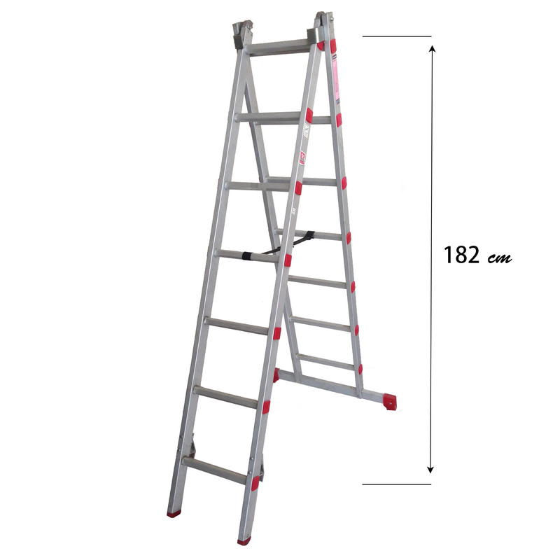 نردبان 4 متری دولنگه دوطرفه کشویی (مخابراتی). وزن قابل تحمل نردبان 150 کیلوگرم و مجاز 130 کیلوگرم ، قابل تبدیل به سه حالت مختلف، شامل دو لنگه دو متری مجزا ، ارتفاع در حالت باز شده کامل هر دو لنگه به صورت کشویی 3.35 متر ، در حالت دو طرفه 1.82 متر ، در حالت بسته 2 متر می باشد. در ساخت این نردبان از پروفیل های مستحکم اکسترود شده و بدون خط اتصال از جنس آلیاژ مخصوص آلومینیوم استفاده شده است و نفوذ عمیق پله ها در پروفیل های جانبی و پرس محکم انتهای پله ها موجب اتصال امن آنها گردیده است و به علت نوع آلیاژ استفاده شده، موجب استحکام بالا و وزن کم نردبان گردیده است. ، قابلیت بالای حفظ تعادل به علت استفاده از پایه پهن و لاستیک های مخصوص ضد لغزش در پایه های نردبان و کمربند ایمنی و سطح مقطع مربع شکل موجب استحکام بیشتر پـله ها و ایمنی بالا شده و همچنین راحتی هر چه بیشتر را برای کاربران محترم تامین کرده است. ، به دلیل کیفیت بالای آلیاژ به کار رفته در پروفیل ها، از رنگ کردن محصولات امتناع می کنیم و به ندرت احتمال وجود خط و خش جزئی بر روی محصولات می باشد، ولی در صورت درخواست متقاضی به صورت سفارشی انجام می گیرد. ، شاید در نگاه اول نردبان به صورت یک ابزار ساده به نظر برسد ولی یکی از پر اهمیت ترین نکاتش تامین امنیت و راحتی کاربر می باشد که به حول قوه الهی نزدیک به نیم قرن تامین کننده صد در صد امنیت و ایمنی کاربرانمان بوده ایم و هستیم. ، صنایع آلوپات نخستین تولید کننده ایرانی است که نردبان ها و بالابرهایی با کیفیت برتر در انواع صنعتی و خانگی و فوق مستحکم نیروگاهی و آتش نشانی با استانداردهای پذیرفته شده بین المللی را طراحی و تولید کرده است و دارای استاندارد ایران و ISO 9001:2015 در سیستم مدیریت کیفیت، صادره از رویال سرت ( Royal Cert ) آلمان می باشد و محصولات این شرکت با رعایت آخرین استانداردهای بین المللی در این زمینه تولید می گردد.