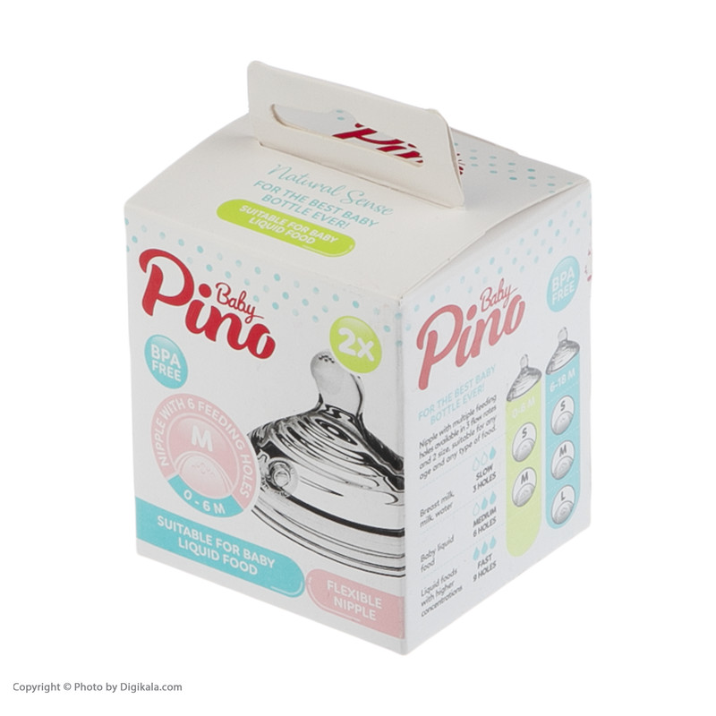 سر شیشههای پینو با سه نوع خروجی جریان کم ، متوسط و سریع و بافتی مشابه سینه مادر جهت بالا بردن احتمال پذیرش نوزاد و راحتی و سلامتی او طراحی شده اند. مبنای طراحی سرشیشههایی با سایز و جریانهای مختلف ( 5 سرشیشه با دو سایز سری و سه نوع ریزش) این است که در هریک از مراحل رشد سیستم تغذیه و رشد فک و دهان نوزادان دستخوش تغییراتی قابل توجه میشود و باید با توجه به شرایط هر کودک، سبک تغذیه مناسب را برای او فراهم کرد. یکسان بودن سایز دهانه بطریهای پینو بیبی، قابلیت تغییر سایز سرشیشهها را متناسب با سن و نیاز نوزاد برای مادران فراهم میکند.
