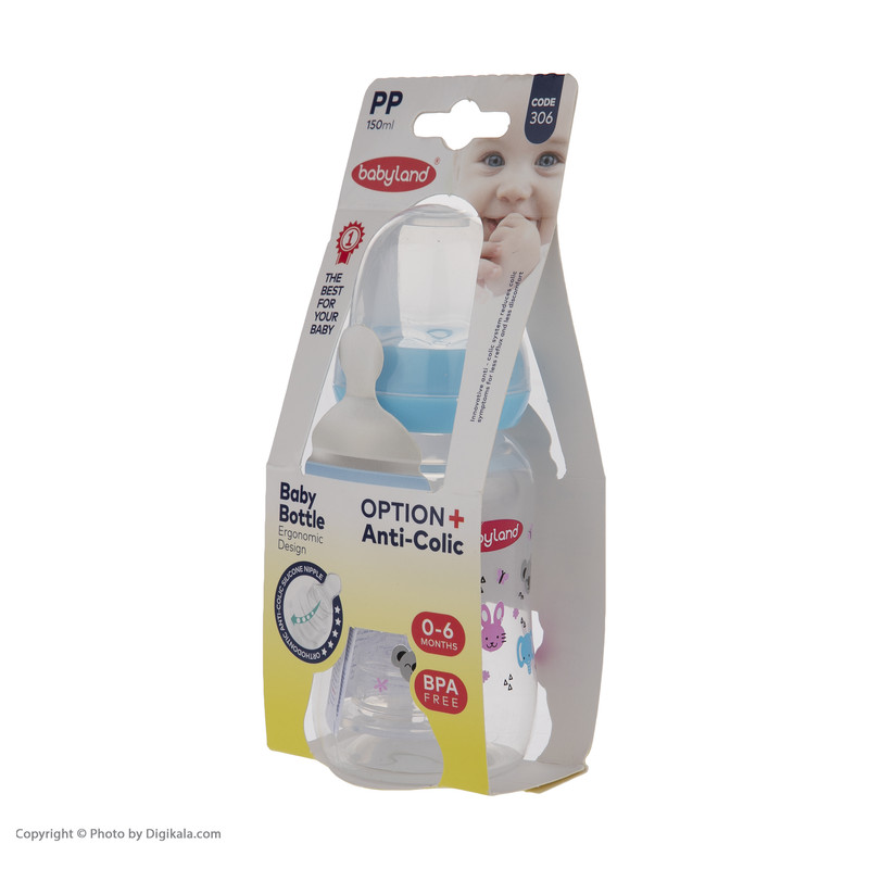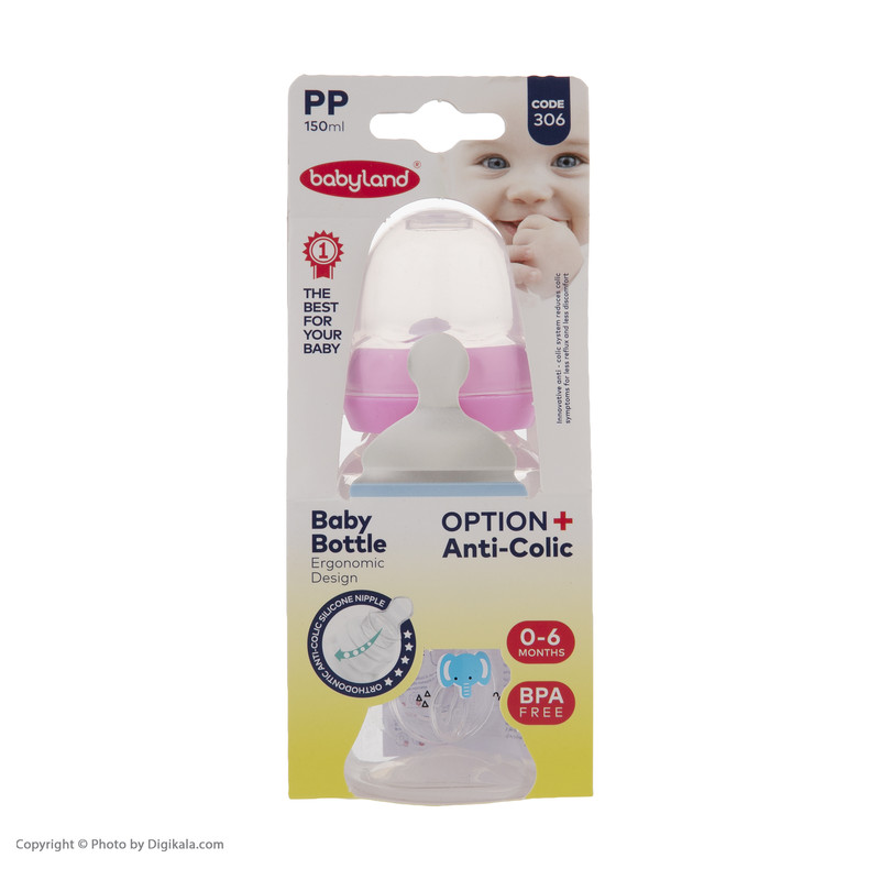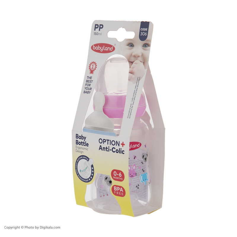 شیشه شیر مدل 306 بیبی لند ظرفیتی 150 میلیلیتری دارد و از طراحی ارگونومیک بهرهمند است. به این معنا که بدنه آن بهخاطر ساختار منحنی شکلی که در میان بدنه دارد برای در دست گرفتن کودک مناسب است. این محصول دارای یک در پوش و همچنین درجهبندی روی بدنه است که میزان محتویات درون آن را برحسب میلیلیتر نشان میدهد. سر شیشه این محصول از جنس سیلیکون و از نوع ارتودنسی است. در طراحی سر شیشههای ارتودنسی به شبیهسازی از روی سینه مادر توجه شده و ساختار در حال رشد دهان و لثه کودک در نظر گرفته میشود تا هم مکیدن برای او آسانتر شود و هم جلوی رشد نامتناسب دندانهای کودک در آینده را بگیرد. شرکت بیبی لند این محصول را در سه رنگ قرمز و سبز و صورتی به بازار لوازم کودک عرضه شده است.