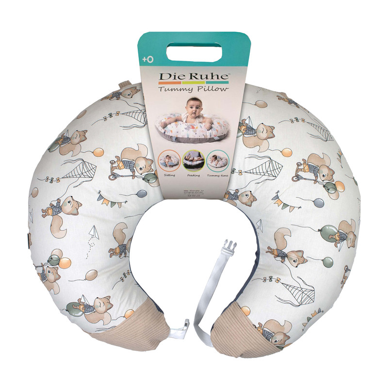 بالش تامی پیلو یک بالش چند منظوره است. این بالش به عنوان بالش شیردهی به راحتی با بند به کمر مادر بسته می شود و مادر و نوزاد را در وضعیت ارگونومیک قرار می دهد تا شیر دادن را راحت تر کند و از کمردرد و آسیب های گردن و شانه جلوگیری کند. هم چنین در این حالت می توانید از جیب های این بالش برای قرار دادن پد شیردهی یا وسایل دیگر استفاده کنید. کاربرد دیگر این بالش به عنوان بالش تامی تایم است. برای زمانی که لازم است نوزاد به شکم دراز بکشد. در این حالت می توانید به دو حلقه ای که در بالش وجود دارد دندان گیر یا اسباب بازی های مورد علاقه فرزندتان را آویزان کنید تا کودک از این وضعیت خوابیدن لذت بیشتری ببرد. کاربرد دیگر این بالش برای آموزش نشستن وبه عنوان نشیمن کودک است تا کودک در محیطی ایمن و نرم باشد و نگرانی از افتادن کودک به طرفین وجود نداشته باشد. در این حالت بهتر است با وارو کردن جیب ها بند را درون جیب های دو طرف بالش پنهان کنید تا از دسترس کودک خارج شوند.روکش این بالش از پارچه صد در صد پنبه ای تهیه شده، زیپ دارد و قابل جدا شدن و شستشو می باشد.