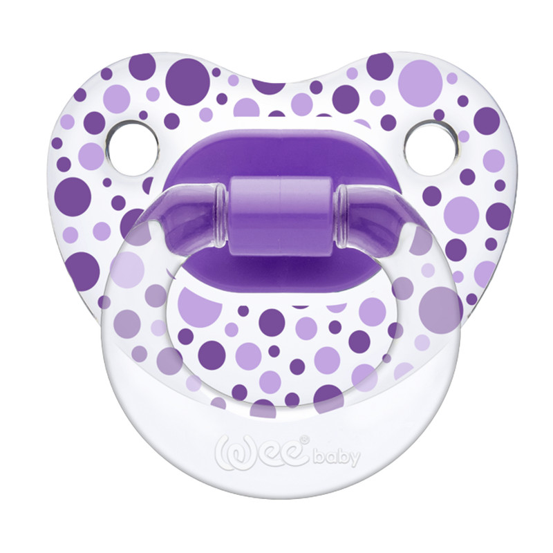 Baby Transparent Patterned Orthodontical Sootherپستانک ارتودنسی مات شماره 1 وی بیبی دارای سوراخ هایی روی بدنه است که باعث گردش هوا بین پستانک و پوست کودک شده و از قرمزی و التهاب پوست جلوگیری می کند. دارای سر سیلیکونی ارتودنسی هماهنگ با ساختار دهان کودکان 0-6 ماه به بالا می باشد. این پستانک دارای فضای مقعر با زاویه رو به بالا جهت قرار گیری زبان است که از تغییر شکل زبان جلوگیری می نماید.