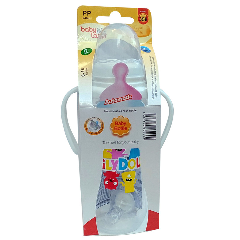 شیشهشیر مدل 358 محصولی از برند معروف «بیبیلند» است. وجود دو دسته در طرفین، فاقد ماده مضر بیفسنول A و طراحی کودکانه و رنگبندی شاد، از جمله مشخصههای این کار هستند. علاوه بر این ویژگیهایی همچون سبک بودن و شکستنی نبودن از دیگر مزایای این محصول به شمار میآیند. این شیشهشیر با بدنهای از جنس پلیپروپیلن ظرفیتی برابر 150 میلیلیتر دارد. این جنس بدنه وزنی سبک را برای آن به ارمغان آورده است. برای این شیشهشیر یک سری گرد معمولی از جنس سیلیکون با سایز 2 در نظر گرفته شده است. این سری جنسی نرم و انعطافپذیر دارد. در داخل این کار یک نی تعبیه شده که به واسطه این نی، از نفخ معده نوزاد جلوگیری میشود. وجود دو دسته در طرفین این کار یک امتیاز محسوب میشود، کودک به کمک این دو دسته، راحتتر شیشه را در دست میگیرد. همچنین درپوش در نظر گرفته برای این کار، به خوبی از سری شیشهشیر محافظت میکند. این شیشهشیر از مواد مرغوب تولید شده و در تولید آن ماده مضر (BPA) به کار نرفته است.