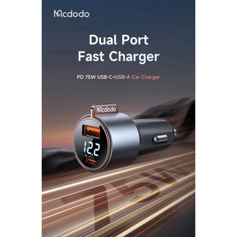 شارژر فندکى 75وات مک دودو مدل CC-3690 ساخته شده از آلیاژ آلومینیم و مواد PC+ABS علاوه بر ظاهر شکیل دارای استحکام مناسبی میباشد.این فندکی دارای دو خروجی USB و تایپ سی با توان خروجی مجموع 75 وات است که سهم تایپ سی 45 وات و USB توان 30 وات را پشتیبانی میکند.این فندکی از پروتکل های شارژ سریع PD3.0/ PPS/ QC4+/ QC3.0/ AFC/ FCP/ SCP/ SFC2.0/ BC1.2/Samsung/Apple 2.4A انواع موبایل و تبلت (بسته به قابلیت دستگاه و کابل مورد استفاده) پشتیبانی می نماید.این شارژر فندکی دارای نمایشگر ولتاژ میباشد که سهولت کار در تاریکی خودرو را نیز فراهم میکند.از شارژر فندکى 75وات مک دودو در انواع خودرو سواری و کامیون و اتوبوس می توان استفاده نمود.ساپورت ولتاژ ورودی DC 12V-24V از ویژگی های این فندکی است.
