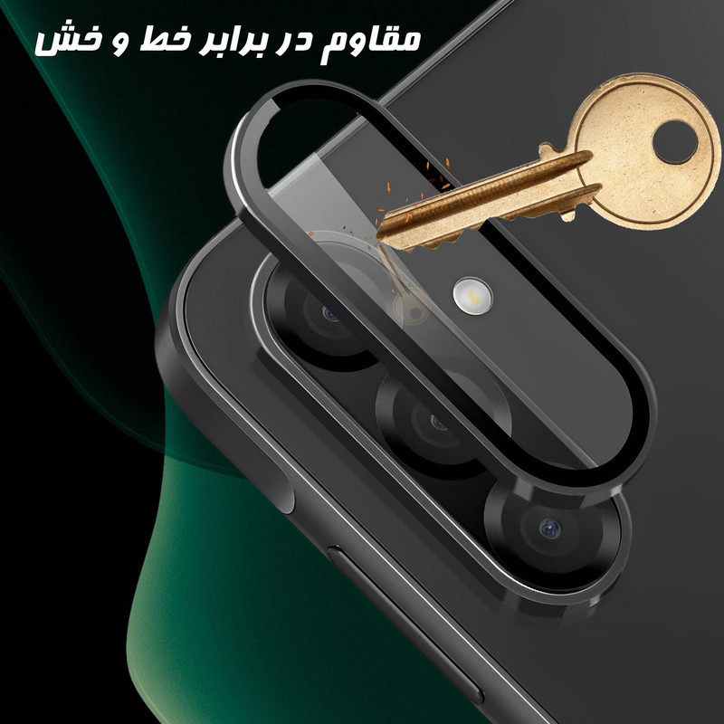 جنس این محافظ لنز دوربین ساخته شده از فلز و شیشه می باشد ، بخش وسطی از جنس شیشه و اطراف آن از جنس فلز می باشد ، این ساختار باعث می شود تا از لنز گوشی موبایل سامسونگ Galaxy A56 شما به صورت کامل محافظت شود. این محافظ لنز دوربین از چسبندگی بالایی برخوردار می باشد. نصب این محافظ لنز دوربین بسیار راحت و آسان می باشد. در بسته بندی محصول یک پد الکلی وجود دارد تا قبل از نصب محافظ ، لنز های دوربین گوشی موبایل خود را تمیز کنید. بخاطر جنس با کیفیت مواد ساخته شده در این محصول کیفیت تصویر و فیلم برداری لنز گوشی موبایل شما به هیچ وجه کاهش نمی یابد و اصلا باعث افت کیفیت لنز دوربین نمی شود. با نصب این محافظ ، از لنز گوشی خود در برابر ضربه و آسیب ، گرد و غبار و خط و خش محافظت کنید.