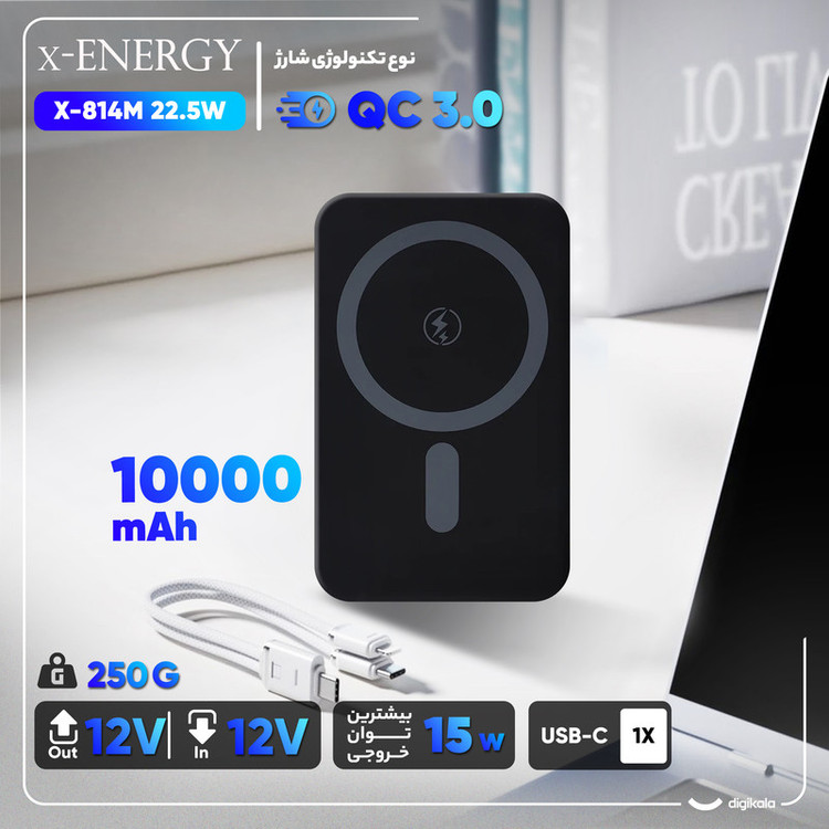 مشخصات فنی: Input Type-c: 5V/2.4A 9V/2A 12V/1.5A Out put Type-c: 5V/3A 9V/2.5A 12V/1.6A Wireless Output:15W