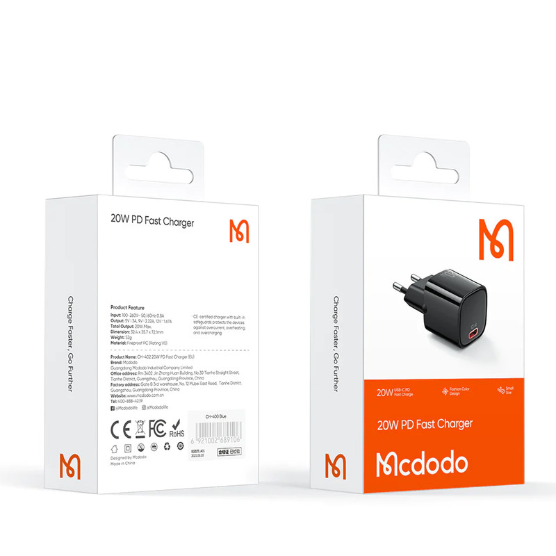 شارژر دیواری ۲۰ وات مکدودو مدل CH-402 یک محصول جمعوجور و کارآمد برای شارژ سریع انواع گوشیها و تبلتها است. این شارژر با وزن ۵۲ گرم و بدنهای از جنس پلیکربنات مقاوم طراحی شده و استفاده از آن در خانه، محل کار یا سفر بسیار آسان است. اتصال شارژر به منبع برق از طریق دوشاخه استاندارد ایران انجام میشود و نیاز به تجهیزات جانبی اضافی ندارد.
