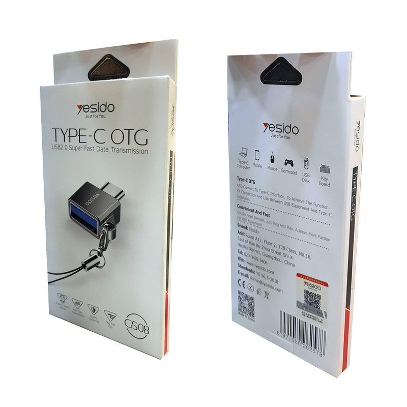 کمپانی یسیدو از معتبرترین کارخانه های تولید لوازم جانبی موبایل میباشد که محصولاتی با کیفیت و قیمتی معقول روانه بازار میکند ، مبدل OTG یو اس بی به تایپ سی مدل GS08 از USB پشتیبانی میکند که انتقال اطلاعات با حداکثر سرعت انجام میشود ، با استفاده از این مبدل میتوان انواع فلش مموری تا ظرفیت 512 گیگا بایت ، کیبرد ، موس ، دوربین ، گیم پد و ... را به انواع گوشی و تبلت و لپ تاپ مجهز به درگاه یو اس بی Type-C وصل کرد.