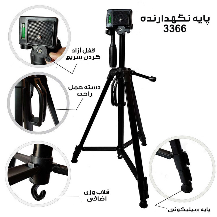 سایر توضیحات: طول سه پایه در حالت جمع شده 52سانتی متر وزن 3پایه 650 گرم