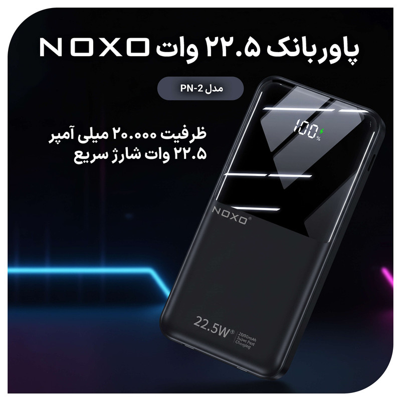 پاوربانک نوکسو مدل PN-2 با ظرفیت 20000 میلیآمپر ساعت انتخابی ایدهآل برای افرادی است که به شارژ مطمئن و پرسرعت در طول روز نیاز دارند. این پاوربانک با پشتیبانی از فناوری شارژ فوقسریع 22.5 وات میتواند گوشیهای هوشمند، تبلتها و سایر دستگاههای دیجیتال را در کوتاهترین زمان شارژ کند.