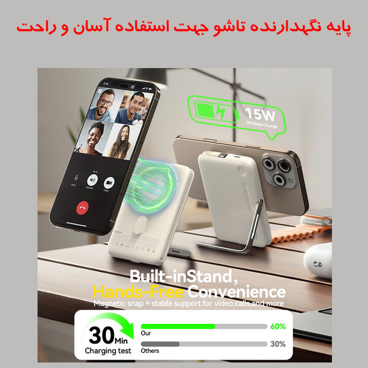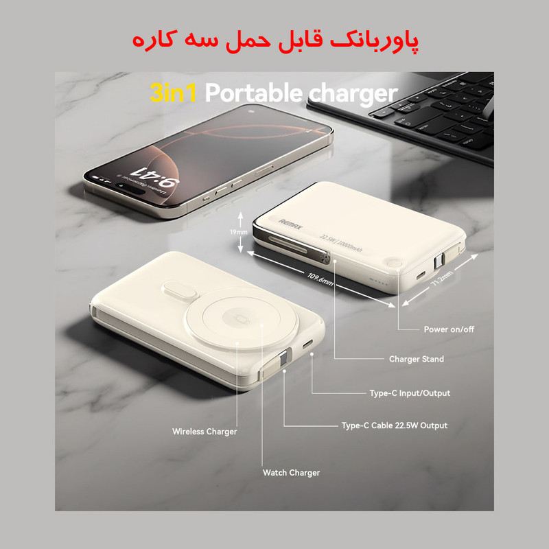 مشخصات فنی: Input Type-C, 5 V⎓3 A/9 V⎓2 A/12 V⎓1.5 A Input Type-C Cable, 5 V⎓3 A/9 V⎓2 A/12 V⎓1.5 A Output: Type-C & Cable, 5 V⎓3 A/9 V⎓2.22 A/10 V⎓2.25 A/12 V⎓1.67 A Wireless charging: 2.5W/5W/7.5W/10W/15W