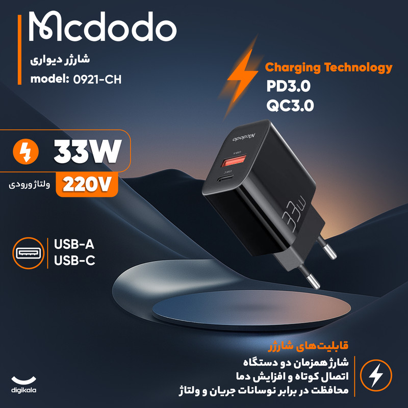 شارژر دیواری 33 وات مک دودو مدل CH-0921