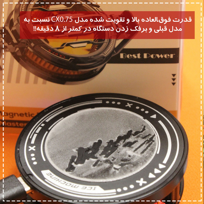 با اتصال از طریق مگنت آلومینیومی و آهنربایی، Freezed بهطور ایمن و محکم روی دستگاه قرار میگیرد و خنککنندگی مداوم را فراهم میکند. این محصول بدون نیاز به باتری کار میکند و به کمک سیستم کاربراتوری خود، سرمای مورد نیاز را بهصورت پایدار تأمین میکند.