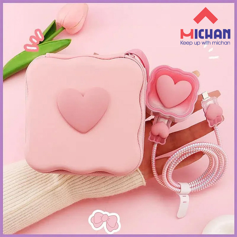 مشخصاتمحافظ شارژر میچان طرح قلبی به همراه کیف مناسب برای شارژر اپل 3 پین