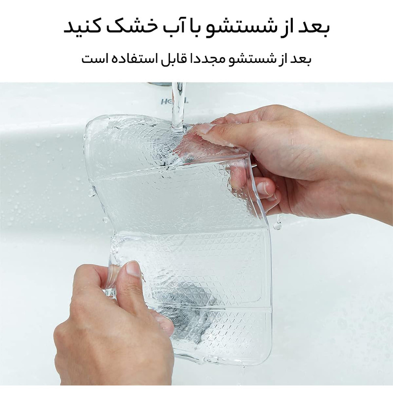 این هولدر قابلیت شست و شو دارد و بعد از هر بار شستن دوباره چسب آن به حالت اولیه باز می گردد و میزان چسبندگی آن کاهش نمی یابد. ابعاد این هولدر 122x205 میلی متر بوده و قابلیت انعطاف پذیر داشته تا بتوانید به راحتی آن را در هر مکانی مورد استفاده قرار دهید.