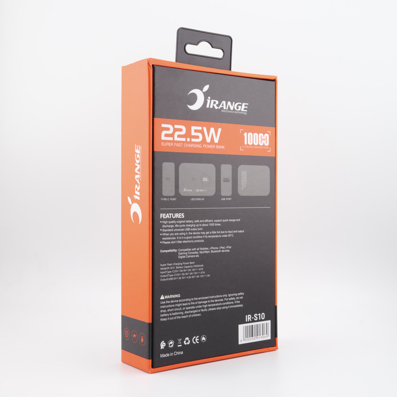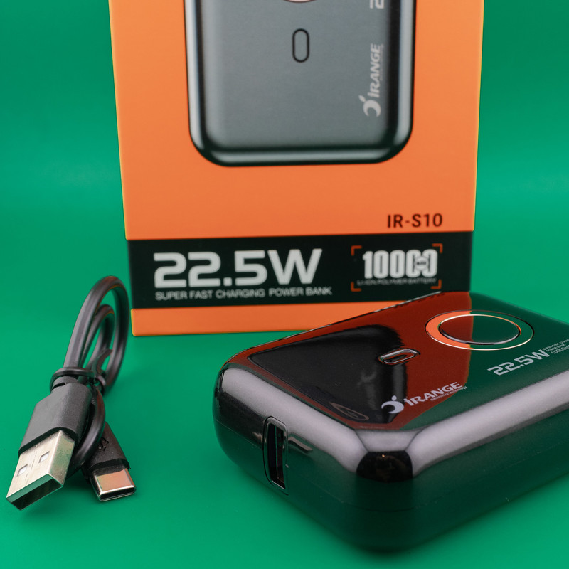 پاوربانک «آیرنج» مدل «IR- S10» با ظرفیت اسمی 10000 میلیآمپرساعت و وزن 170 گرم دارای یک باتری لیتیوم پلیمری می باشدکه باعث عمر بیشتر و کمترشدن وزن این پاوربانک است. ابعاد این پاوربانک خیلی کوچک بوده که بهراحتی میتوانید آن را در جیب و یا کیف خود قرار دهید و بهسادگی آن را حمل کنید. این پاوربانک قادر است بسیاری از گوشیها و تبلتها را با شدت جریان 2 و 3 و 4.5 آمپر به صورت سریع شارژ نماید.یک نشانگر به شکل LCD کوچک روی محصول قرار گرفته که میزان شارژ را به درصد نشان میدهد و به وسیله آن به راحتی میتوانید میزان شارژ محصول خود را مدیریت کنید. شارژر همراه «آیرنج» مدل «IR- S10» قابلیت شارژ دو دستگاه به طور همزمان را از دو خروجی خود دارد. بدنه این پاوربانک از پلاستیک فشرده ساخته شده است و مقاومت نسبتا خوبی نیز دارد. ابعاد این محصول 23*55*75 میلیمتر بوده و کوچک و کمحجم به حساب میآید. اگر قصد خرید یک پاوربانک جمعوجور و سبک وبا کارآیی بالا را دارید این دستگاه میتواند گزینه بسیار مناسبی برای شما باشد.