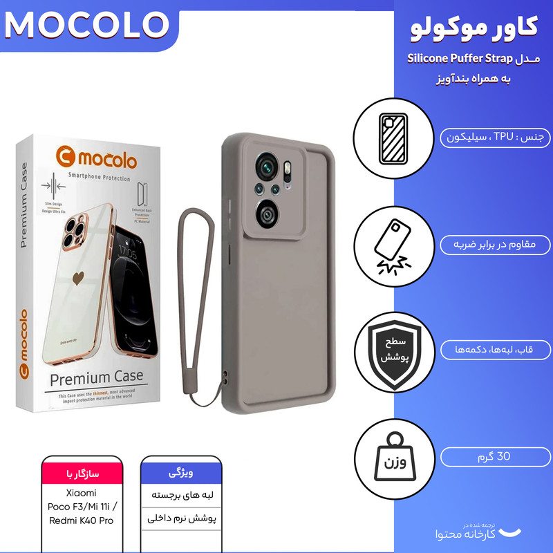 کاور موکولو مدل Silicone Puffer Strap مناسب برای گوشی موبایل شیائومی Poco F3 / Mi 11i / Redmi K40 Pro به همراه بند آویز