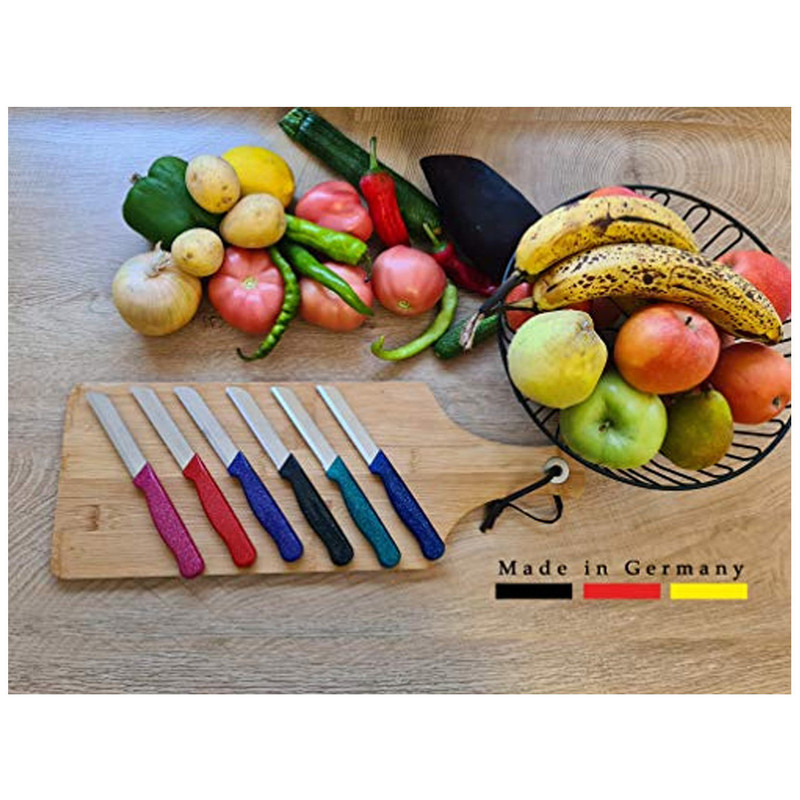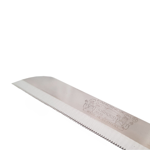 چاقو های اصلی مارک فردینوکس ساخت آلمان، را می توان جزو قدیمی ترین و همچنین تیز ترین چاقو های دنیا دانست، چرا که این مدل با داشتن تیغه استیل ضد زنگ و دسته های این کارد از جنس پلی پروپیلین ضد حساسیت و آنتی باکتریال است و به هیچ عنوان شکسته و یا از تیغه جدا نمی شود ، مدلی بسیار کارآمد برای تمام مصارف خانگی بوده که شما را از داشتن یک چاقوی تیز و و مقاوم بی نیاز خواهد نمود. این چاقو ها به صورت تکی عرضه شده و شما می توانید به صورت انتخابی هر یک از چند رنگ: نارنجی ، زرشکی ، سرمه ای ، سفید ، بنفش را انتخاب و تهیه نمایید. لازم به ذکر است این مدل ساخت کشور آلمان بوده و علامت برند Solingen-fardinox حک شده است و همچنین Made in Germany روی تیفه آن درج شده است که می تواند خیال شما را از داشتن یک چاقوی بسیار با کیفیت و همچنین ماندگار تامین نماید و به هیچ عنوان شکسته و یا از تیغه جدا نمی شود کیفیت تیغه این کارد به بیش از 20 سال عمر مفید دارند. کیفیت شایسته ایرانی است . از خرید تان لذت ببرید .