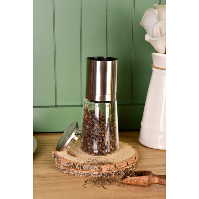 فلفل ساب و نمک ساب چوبی: فلفل و نمک ساب چوبی علاوه بر کاربری سابیدن فلفل و نمک، به عنوان زینت روی میز غذاخوری هم استفاده می شود. همچنین بدنه محکمی که این مدل نمک و فلفل ساب ها دارند باعث شده در اثر استفاده زیاد از خرابی شان جلوگیری شودنمک و فلفل دو چاشنی جدانشدنی در غذا هستند. اکثر آشپزها نیز معتقدند غذای بدون ادویه طعم و بوی خاصی ندارد. از آنجایی که خاصیت ادویه جات پودرشده بعد از زمان طولانی از بین می رود، وجود فلفل ساب و نمک ساب در آشپزخانه هر خانه ای باعث می شود که همیشه عطر زیره و ادویه های دیگر در آشپزخانه بپیچد و اهالی خانه اشتیاق زیادی برای خوردن غذا داشته باشند. جنس این محصول پیرکس و حجم آن 0.17 لیتر می باشد